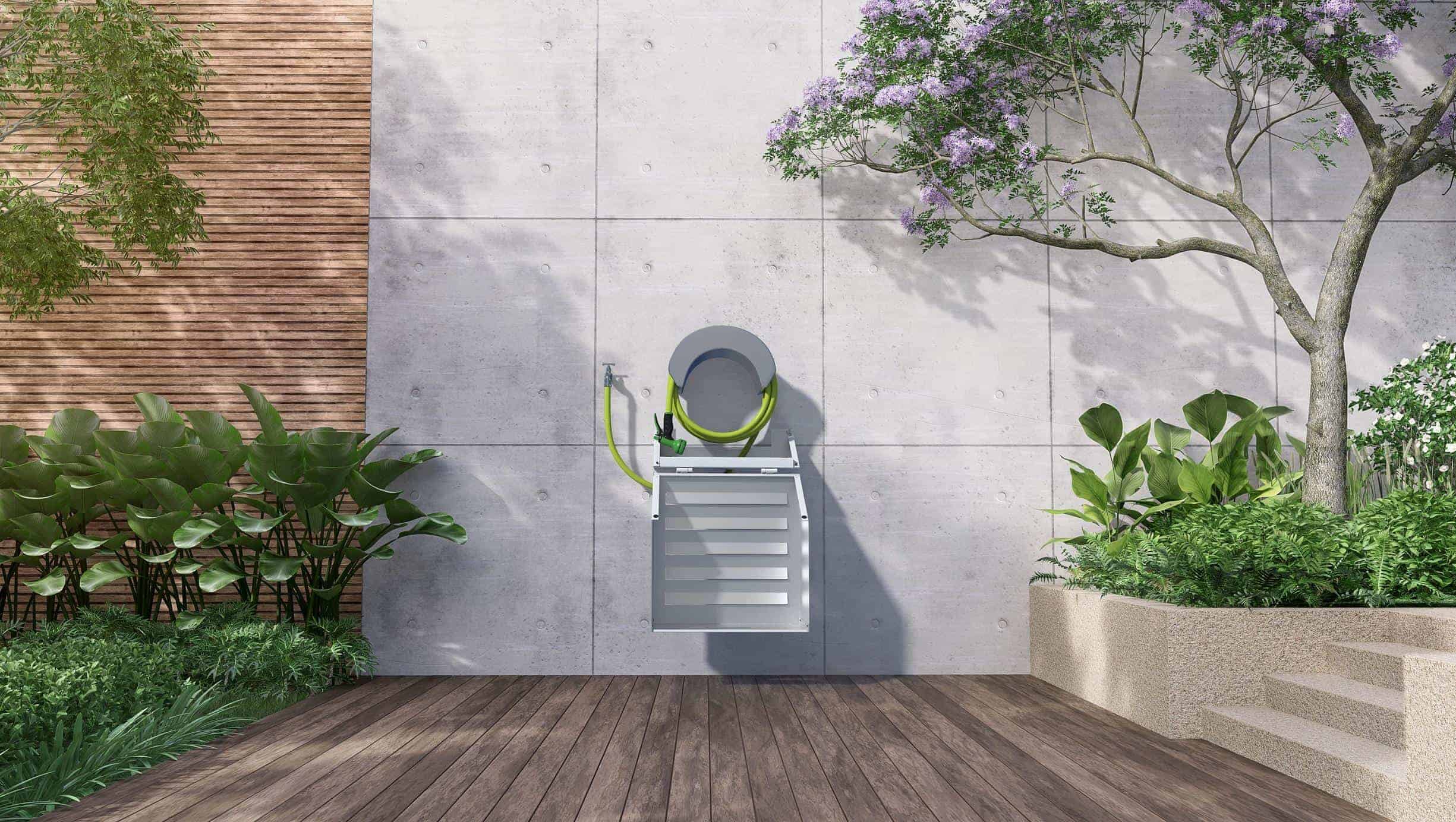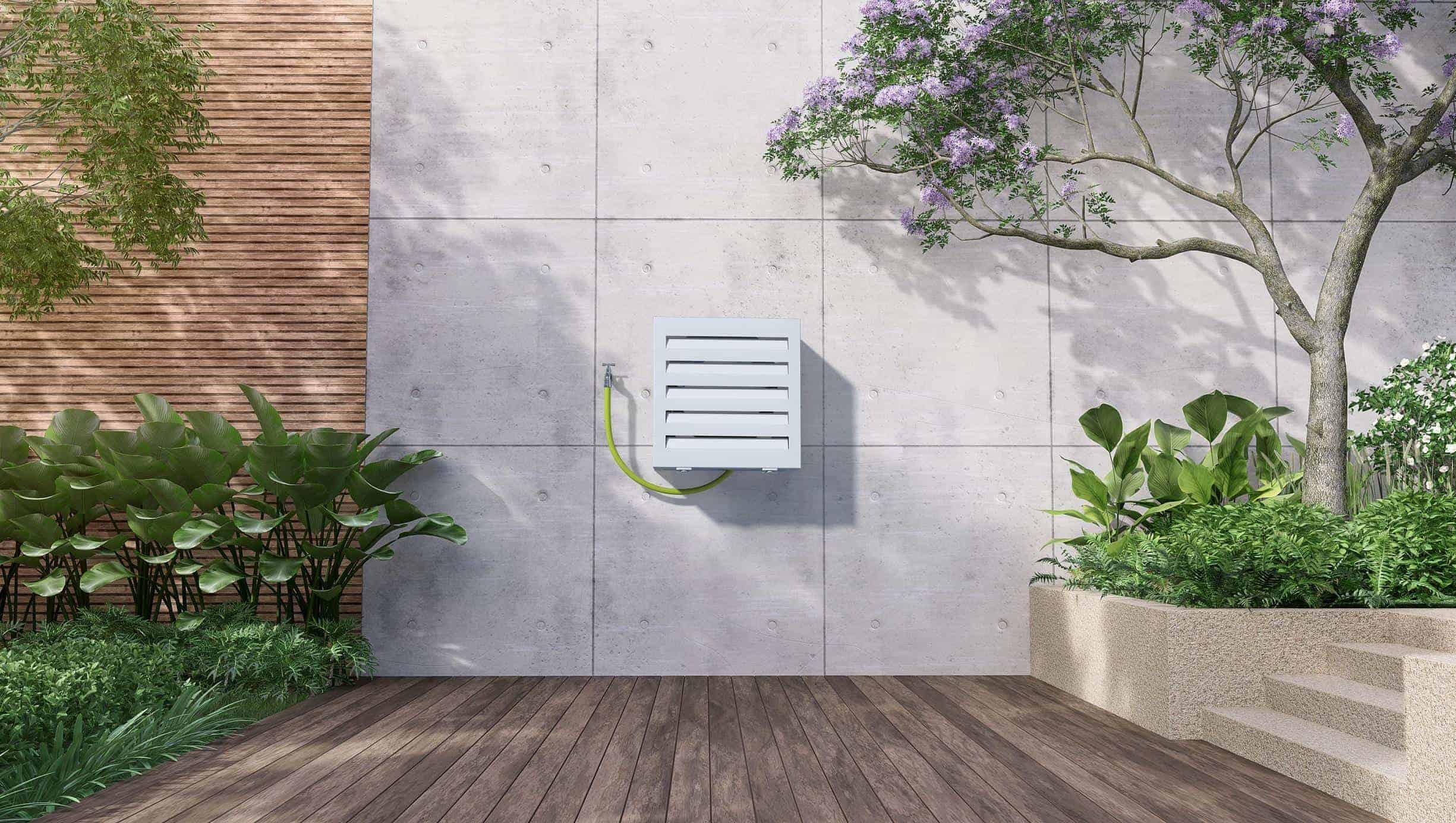 CACHE TUYAU D’ARROSSAGE ATOLE – ALUMINIUM THERMOLAQUÉ POUR DÉVIDOIR MURAL