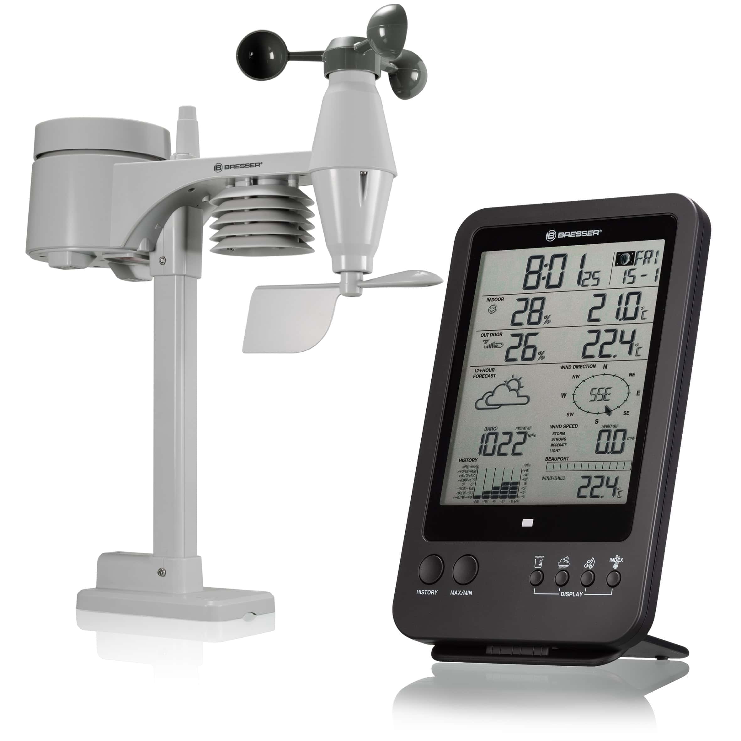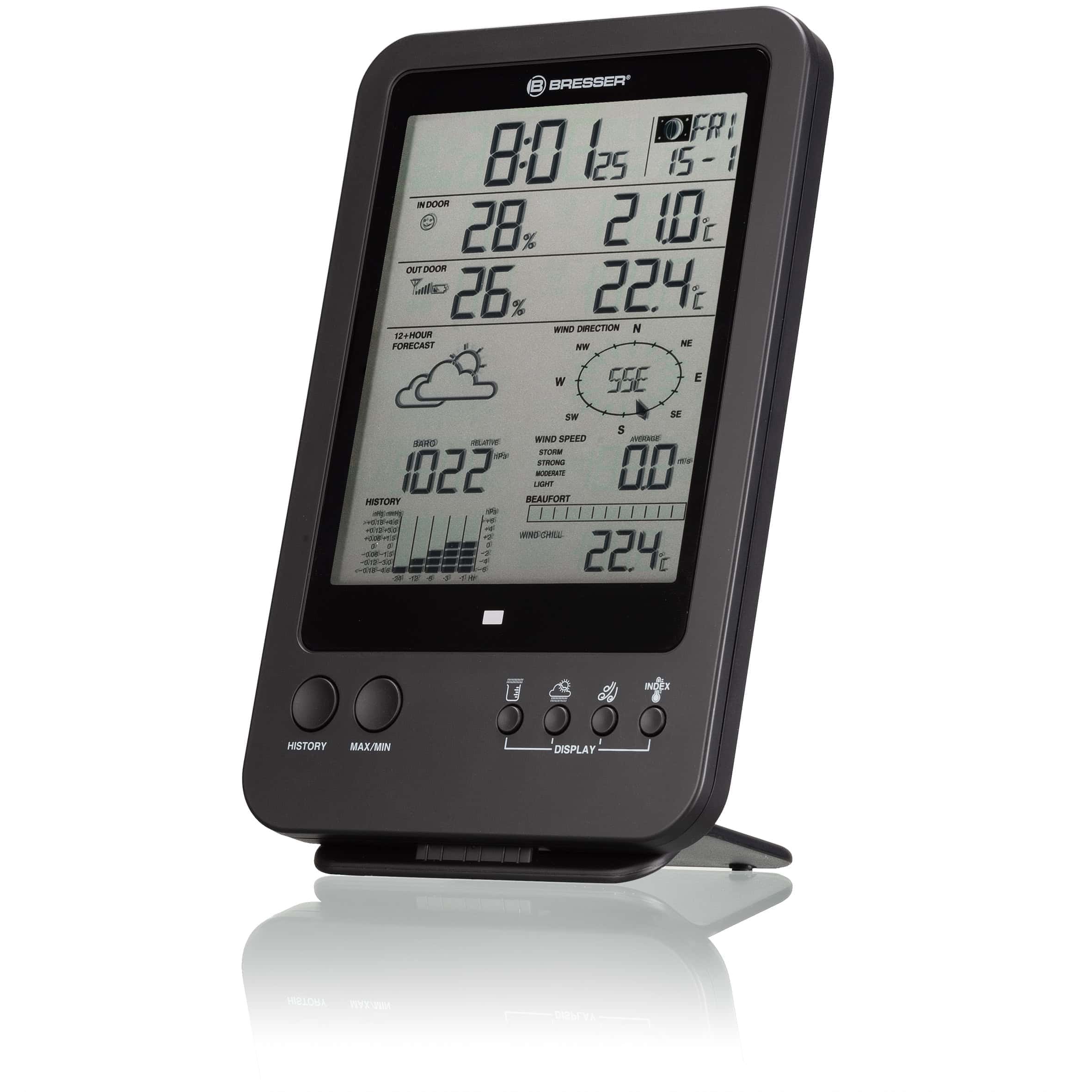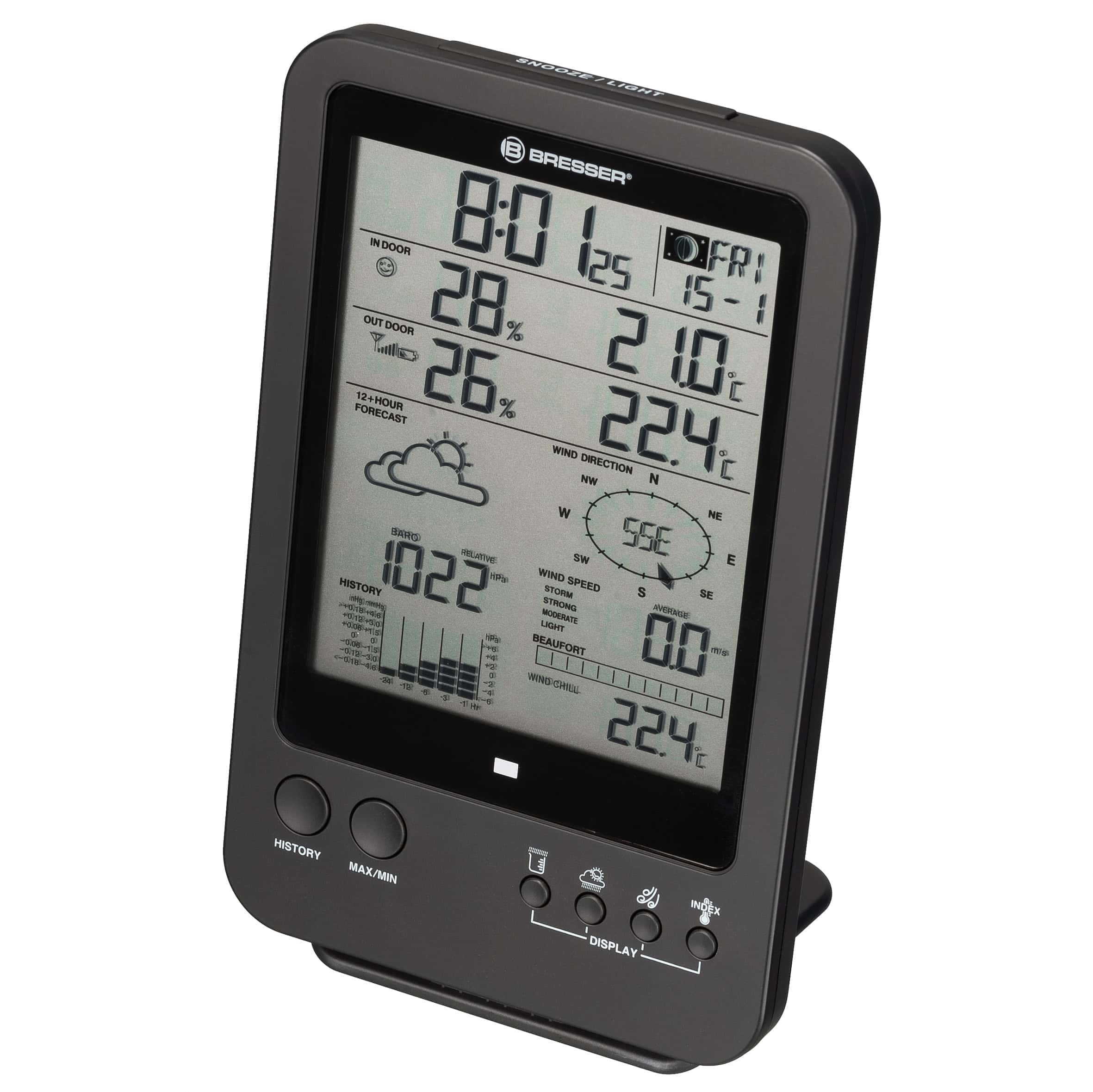 Un mauvais climat intérieur implique souvent des risques de santé, en particulier pour les enfants et les personnes âgées. Le centre météo BRESSER 5-en-1 vous offre une fonction intelligente pour traiter cette question. L’indicateur de climat intérieur informe régulièrement sur le climat intérieur avec un symbole.