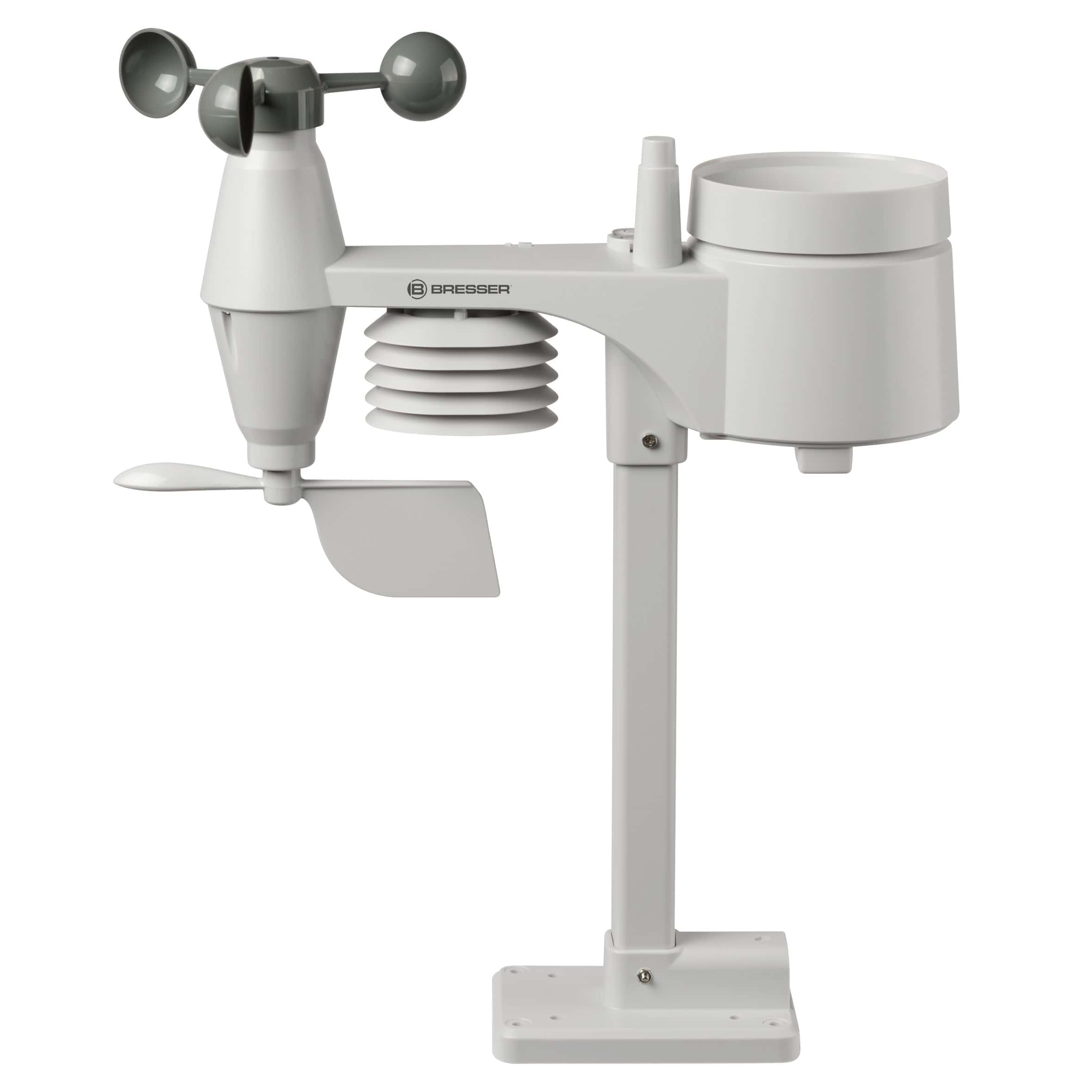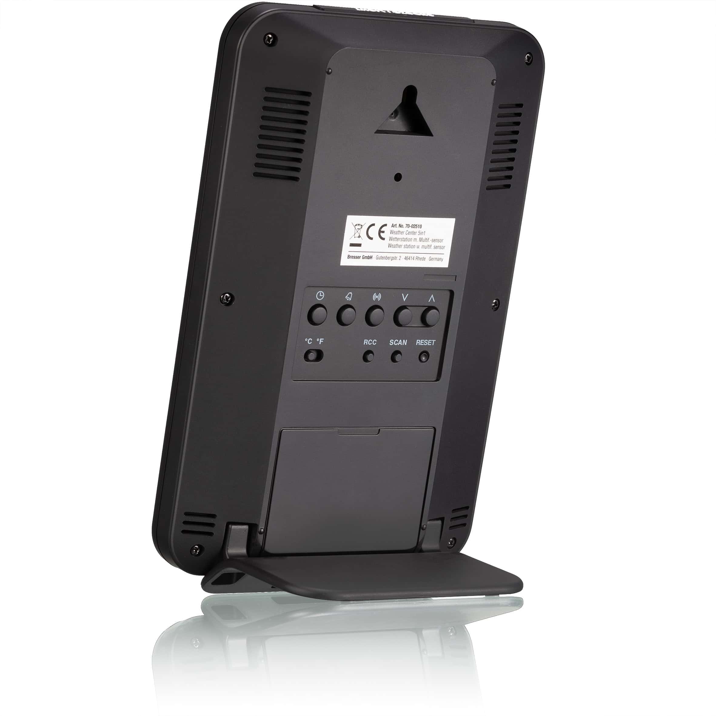 La nouvelle centrale météo BRESSER 5-in-1 Weather center combine d’une manière unique un design compact avec un nombre étendu d’informations. Le capteur extérieur compact et multifonctionnel ne nécessite que peu d’espace et peut donc être placé presque partout. Un collier de serrage et des vis pour la fixation sur un poteau (diamètre d’environ 25-33 mm) ou un mur sont déjà inclus!
