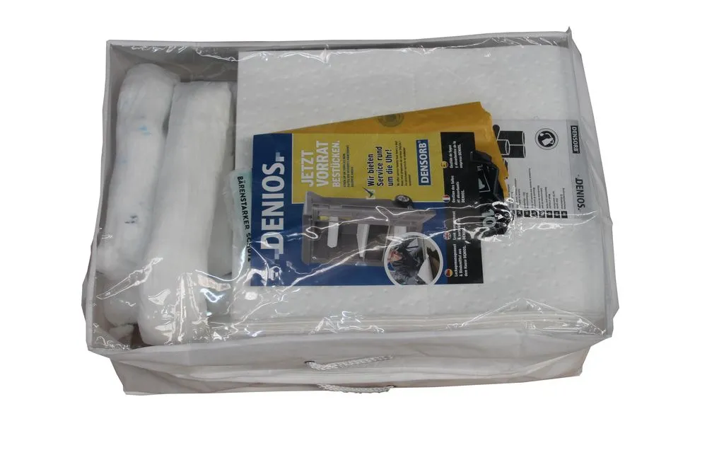 - Contenu de la livraison : 50 feuilles absorbantes 50 x 40 cm, 5 boudins 1,20 m x 8 cm, 1 paire de gants de protection, 2 sacs d’élimination des déchets