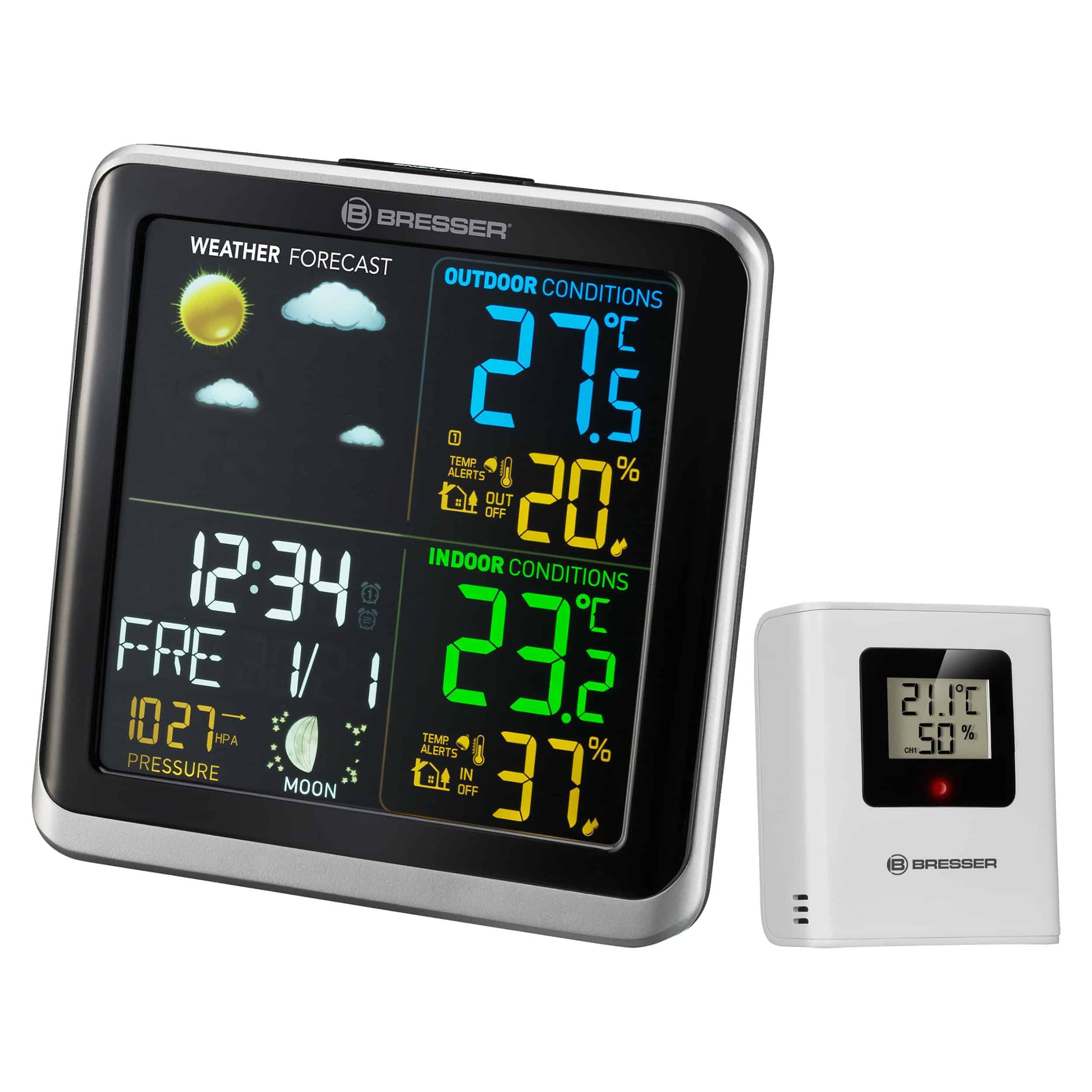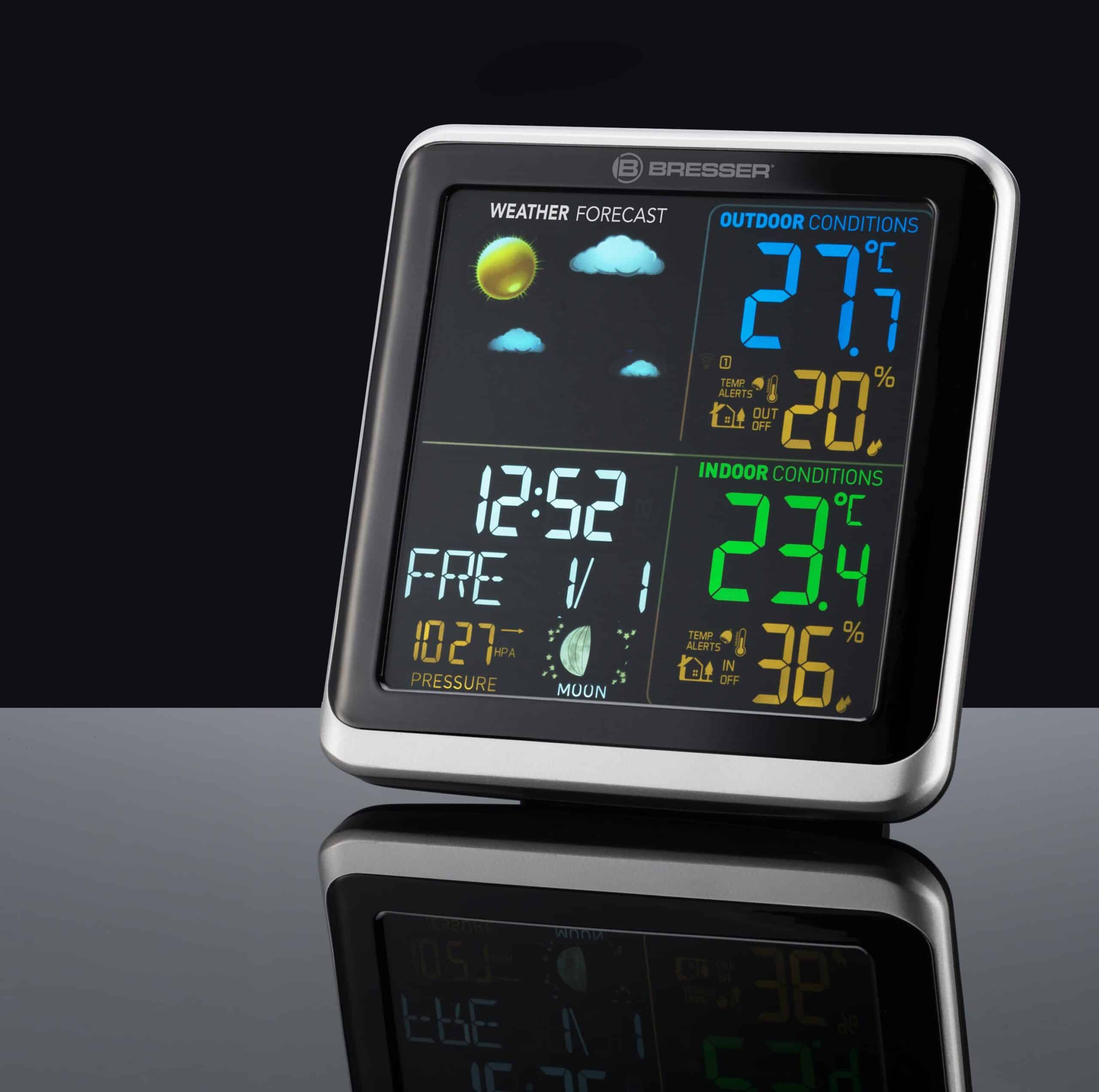 Cette station météo BRESSER ClimaTemp TB possède un écran couleur clairement structuré en quatre parties.