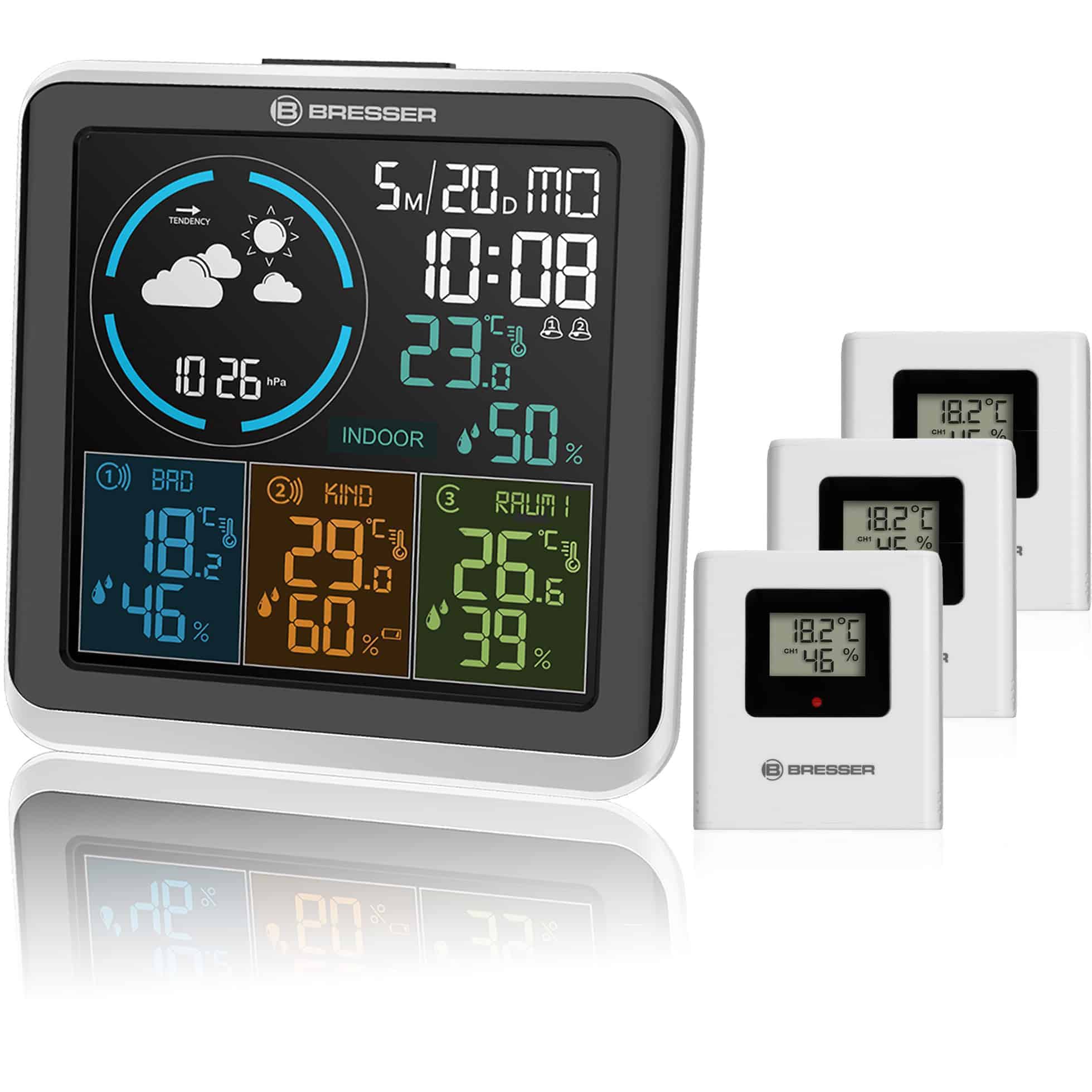 La station météo BRESSER Quadro Individio vous offre des prévisions météorologiques fiables et 4 thermo-hygromètres.