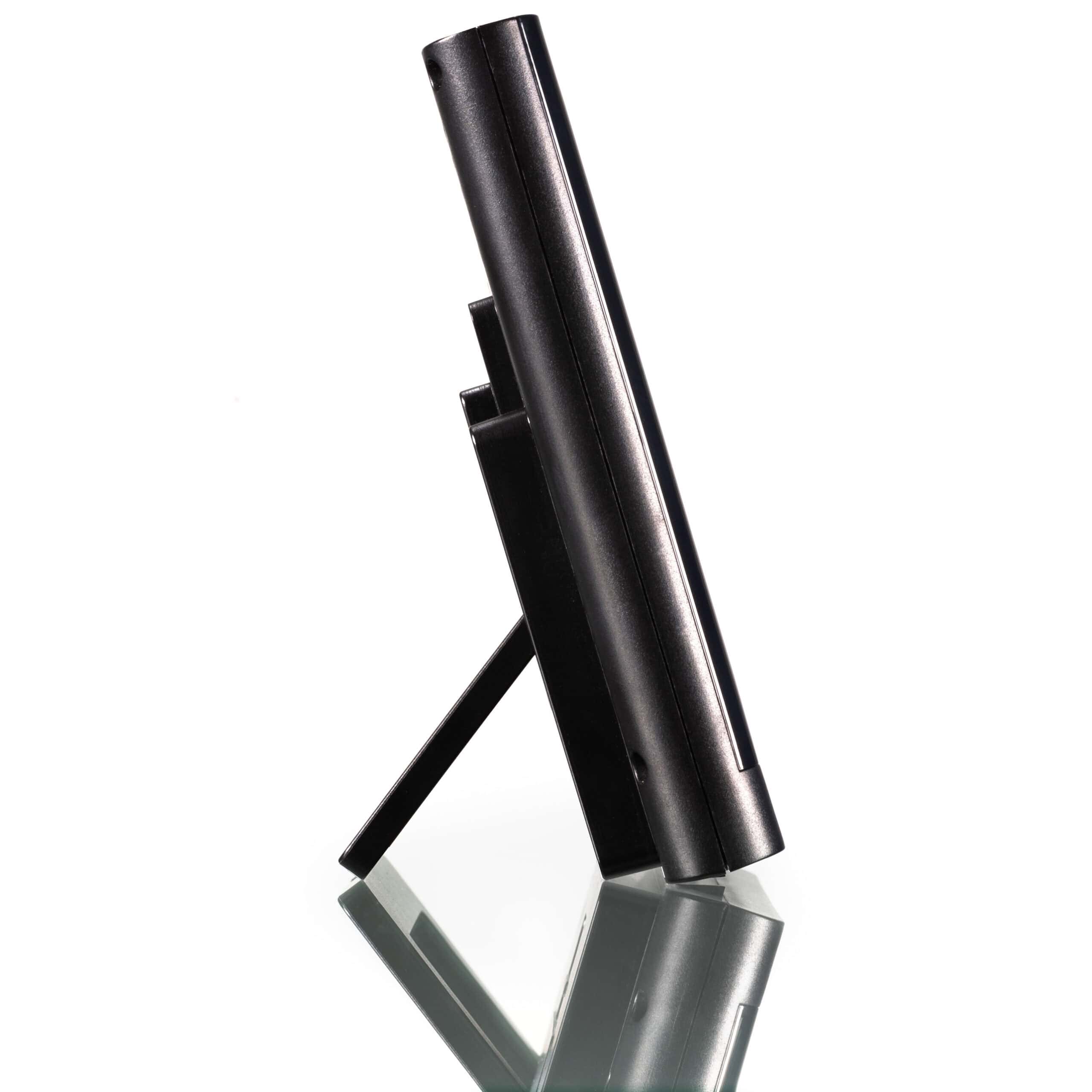Les informations peuvent être gérées très rapidement avec l’écran tactile. En plus de la recommandation de ventilation, l’heure, la température intérieure et extérieure et l’humidité intérieure et extérieure sont affichées. Pour plus de commodité, la station est équipée d’un éclairage de fond blanc, qui est déclenché par le bouton tactile lumineux dans le cadre supérieur.